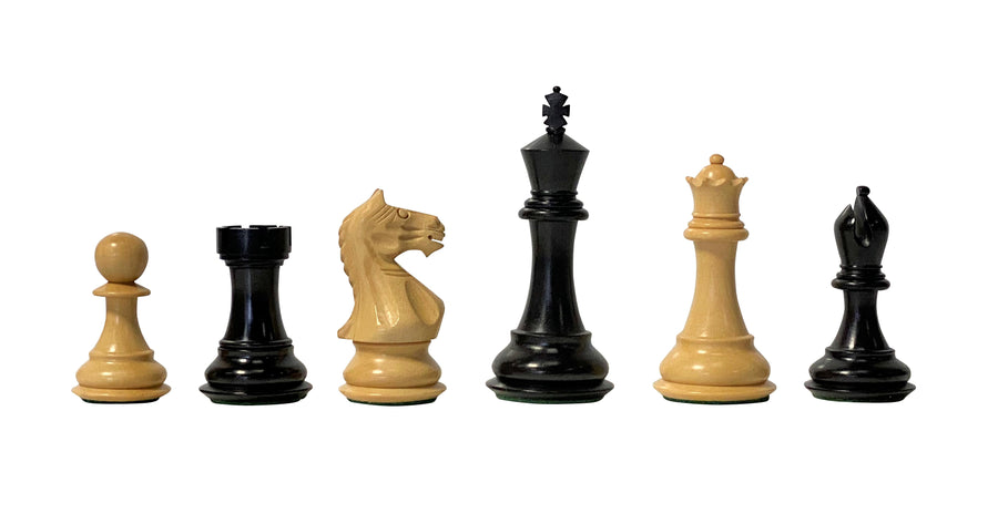 The 3.25-inch Supreme Black Queen's Gambit Chess Pieces are a luxurious set, crafted with precision and elegance. The standout feature of this set is the beautiful carving on the knight pieces, showcasing intricate details that elevate its overall aesthetic. Made from hardwood Boxwood, these pieces are stained and polished to perfection, exuding sophistication and style.