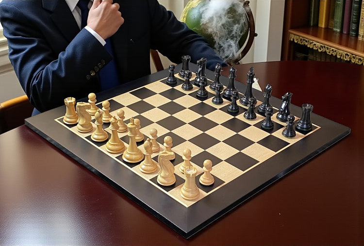 The ultimate choice for collectors and serious players with an eye for quality and tradition. Featuring ebonized dark pieces, a complete set of chessmen, and a 20-inch standard chessboard, this set is designed for both aesthetics and performance, leaving no room for compromise.