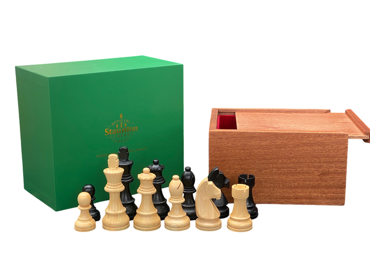 Housed in a solid mahogany slide lid box that provides secure storage. Ideal for competitive players looking for a suitable economy range set of chess pieces.