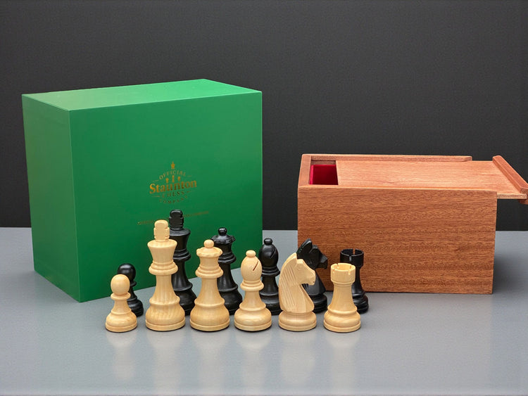 Elite Staunton Black Chess Pieces & Mahogany Box - Official Staunton™