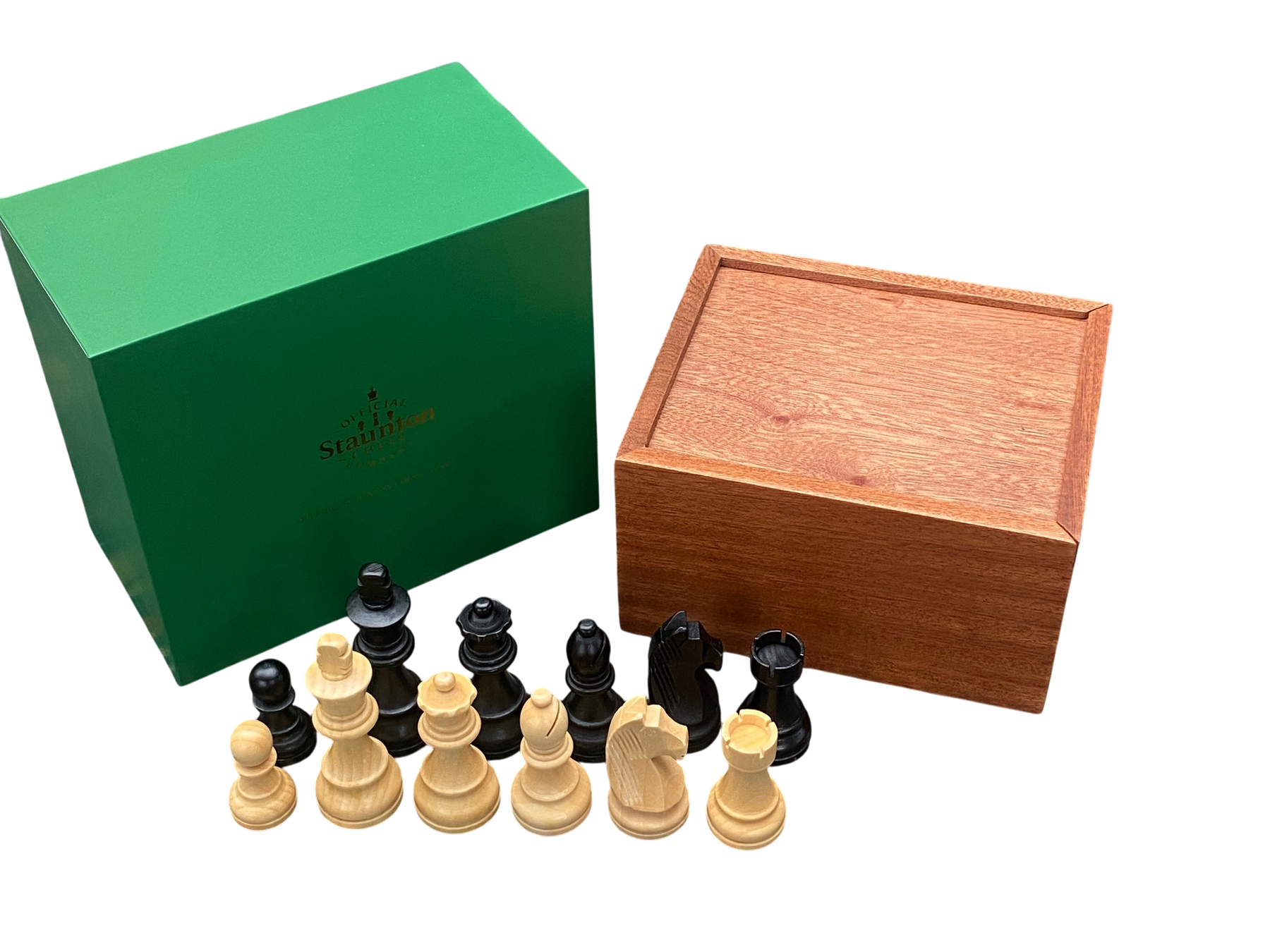 Acacia Club Classic Chessmen & Slide Lid Box - Official Staunton™
