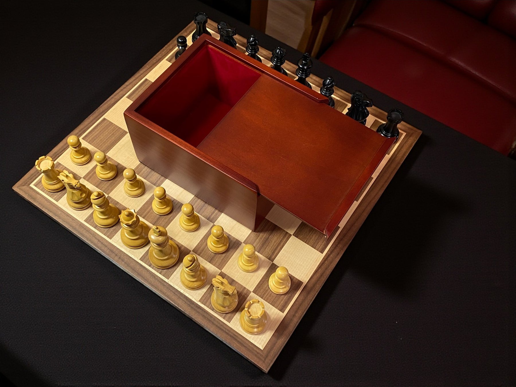 - Mahogany stained chess piece box