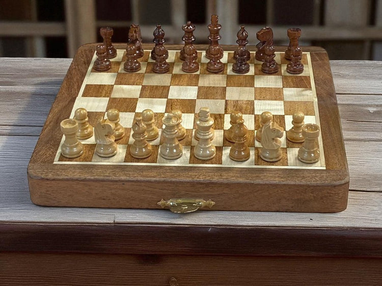 Small Magnetic Chess Set. This compact and magnetic chess set offers convenience, precision, and a unique inlaying process that sets it apart.