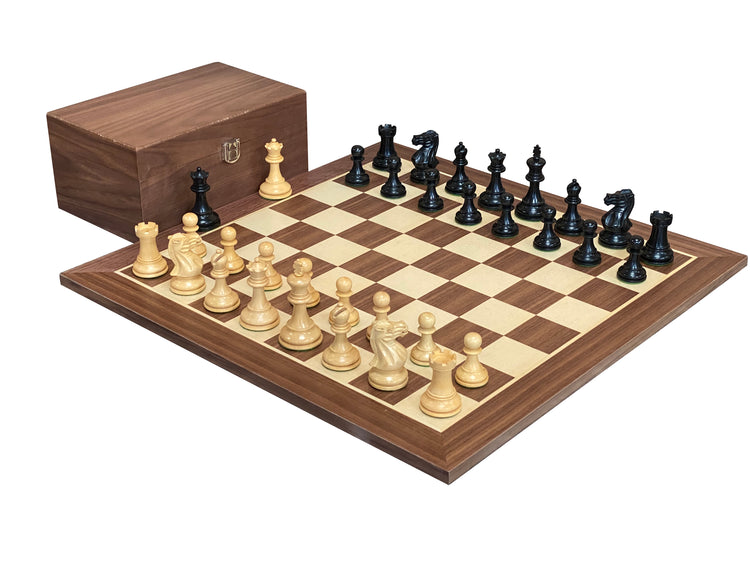 Elite Players Ebonised Chess Pieces, 19" Walnut Chessboard & Mahogany Box