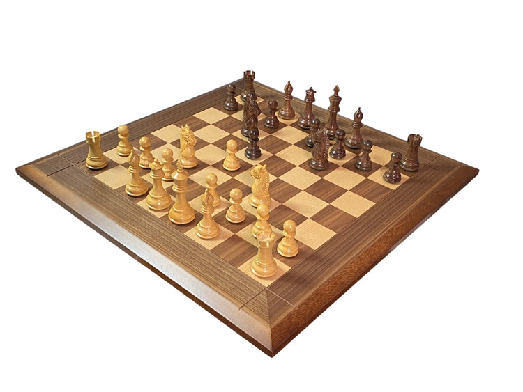 4" British Black Pieces 19” Walnut Set & Mahogany Box - Official Staunton™