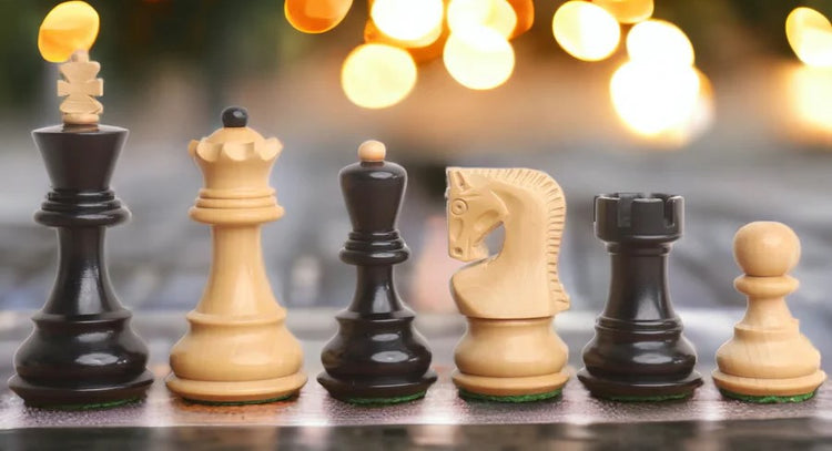 The wood combination includes ebonised boxwood for the dark pieces and boxwood for the light pieces, providing an elegant and timeless aesthetic.