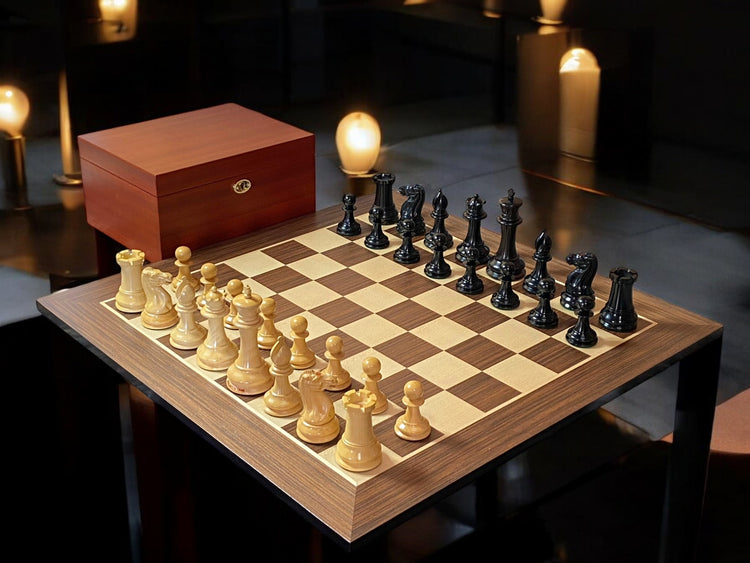 4" Leningrad Black Pieces, 20" Standard Anegre Board & Box - Official Staunton™