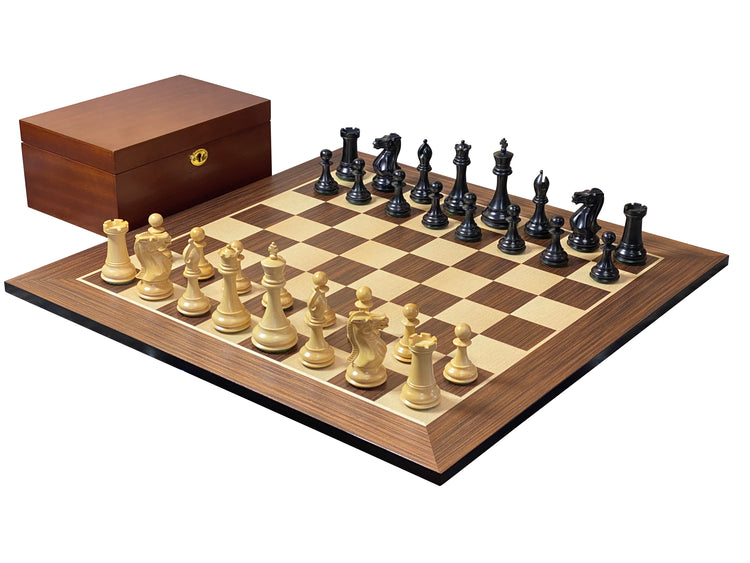 4" Ebonised Collector Chess Pieces 21"Wenge Chess Board & Mahogany Box - Official Staunton™