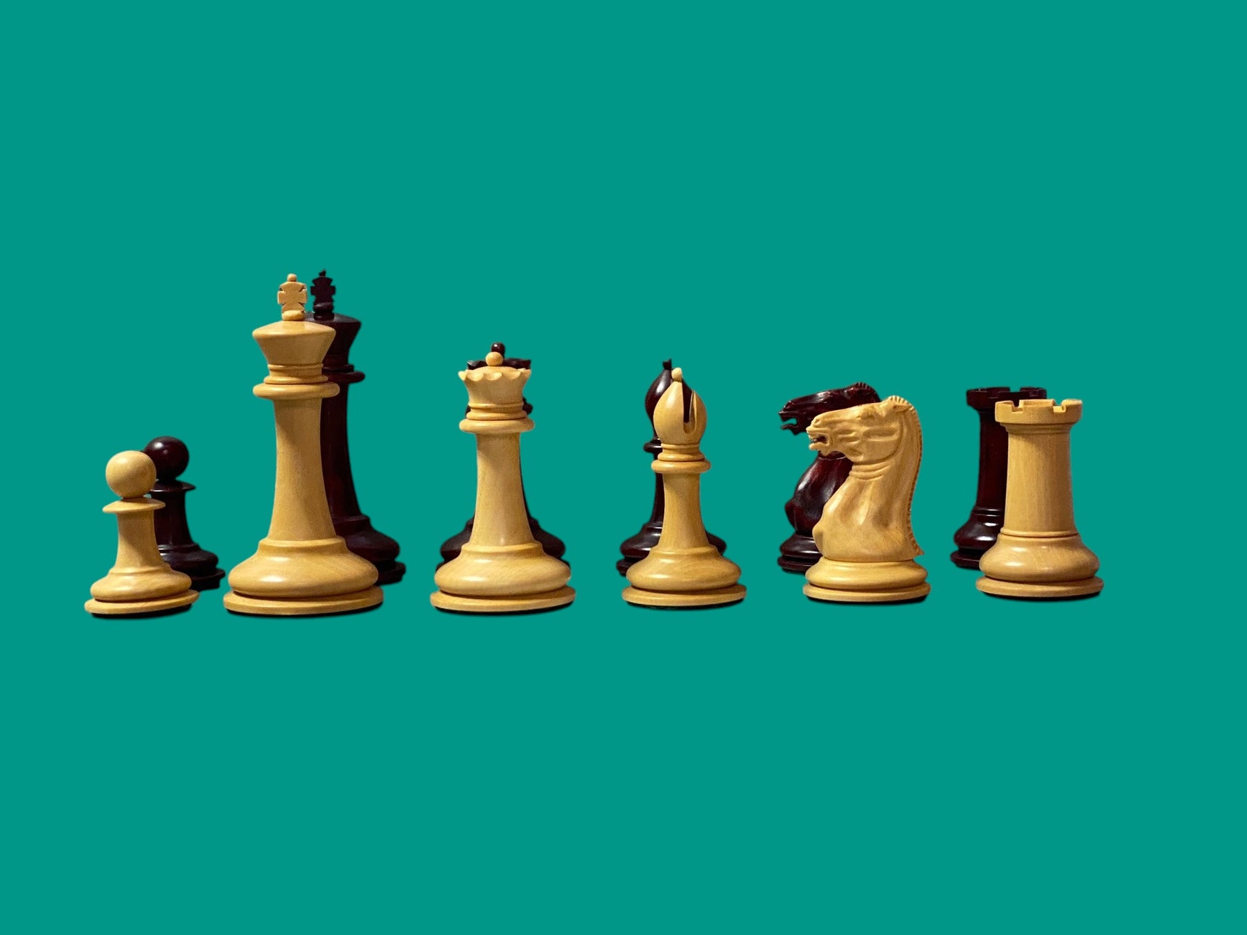 The Cooke 3.5" Claret Boxwood Reproduction Chessmen and Mahogany Hinged Box offers a beautiful introduction to classic chess design.