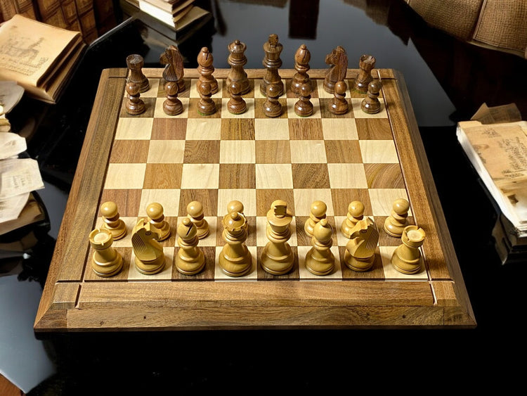 15" Solid Wood Chessboard  3" Acacia Club Classic Chess Pieces