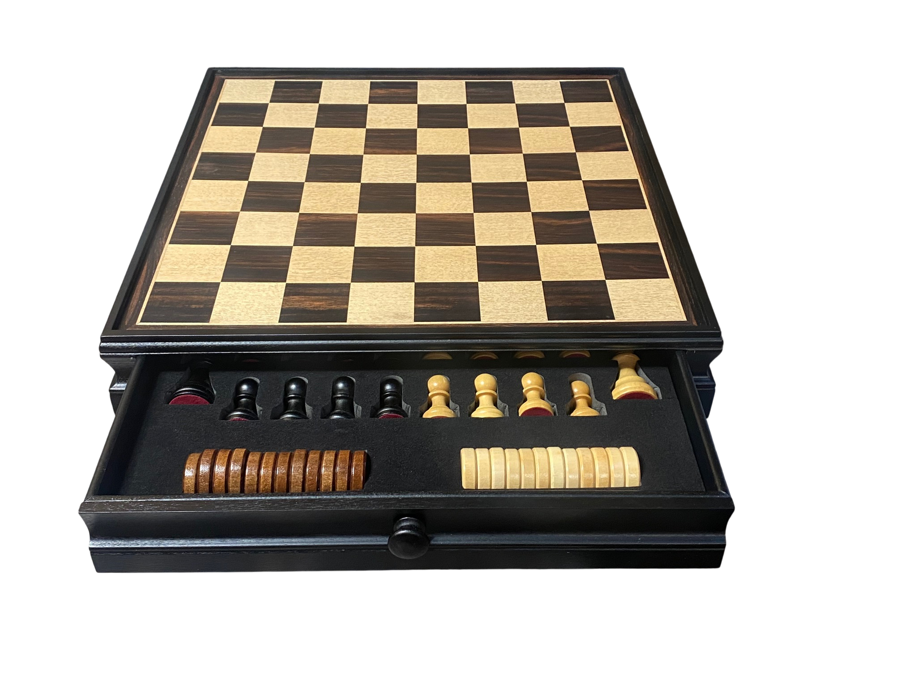 Economy Ebony Drawer Chess and Draughts Set