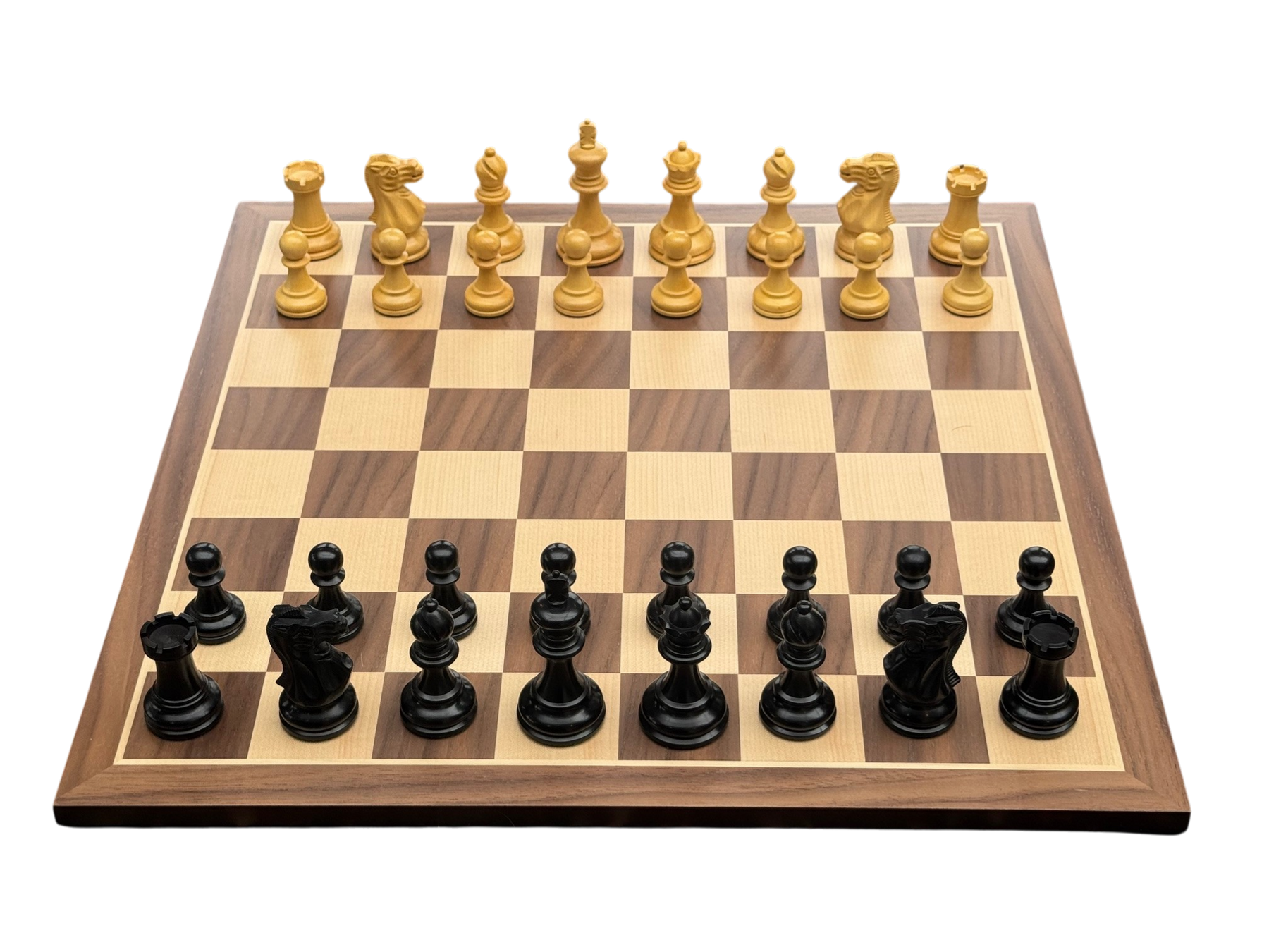 The generously proportioned bases provide superior stability during play whilst enhancing the set's visual presence on the board. Complementing the pieces is a stunning 17-inch walnut chessboard, renowned for its rich grain patterns and durability.