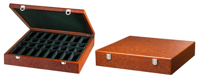 This storage solution is designed to accommodate all standard-proportioned chess pieces that are up to four inches in height. It features a spacious compartment that can hold pieces with a King's base diameter of no more than 1.7 inches (42mm). This makes it an ideal choice for storing your chess set securely and neatly. Please note that chess pieces are not included with this storage unit, so you will need to provide your own set.
