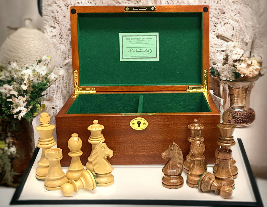3.75" Staunton Classic Acacia Chess Pieces & Mahogany Box - Official Staunton™